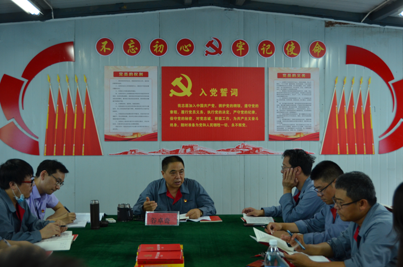 谷書記要求現(xiàn)場臨時黨支部成員,在新舊動能轉(zhuǎn)換工程建設(shè)過程中,充分發(fā)揮黨支部戰(zhàn)斗堡壘作用,強化組織力、執(zhí)行力,堅持踐行黨的宗旨和群眾路線,在各自的崗位上,勇于擔當,敢于亮身份、比貢獻,認真履行崗位職責,為工程建設(shè)添磚加瓦。