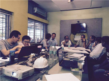 總設(shè)計(jì)師李嚴(yán)和設(shè)計(jì)人員在現(xiàn)場(chǎng)與南亞Rashmi業(yè)主交流