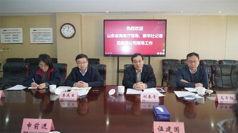 山東省商務(wù)廳、濟南市商務(wù)局及新華社記者來我公司進行對外經(jīng)貿(mào)工作調(diào)研