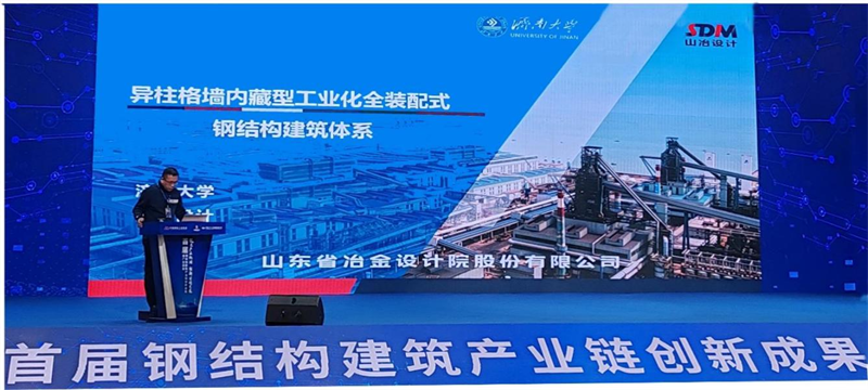 4月9日中國鋼鐵冶金協會主辦的首屆鋼結構建筑產業鏈創新成果推廣交流會上,山冶設計鋼結構建筑咨詢設計研究院院長王士奇攜與濟南大學聯合研發的"異柱格墻內藏型工業化全裝配式鋼結構建筑體系"重磅亮相。